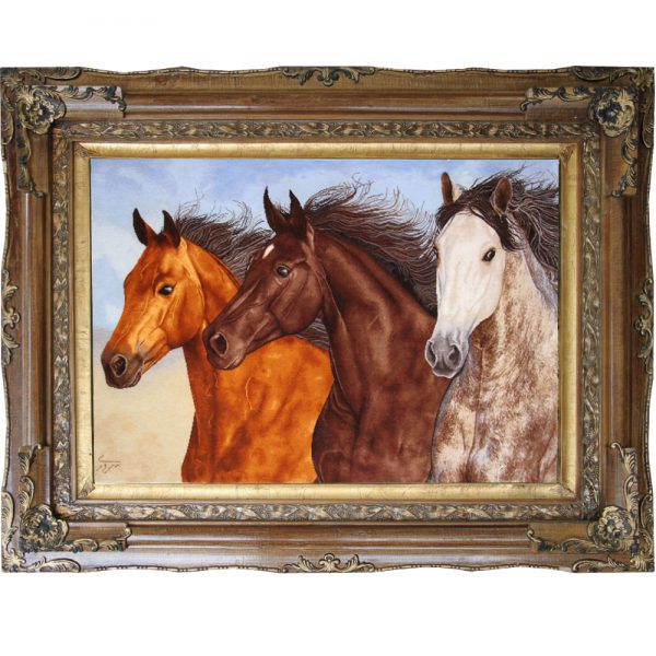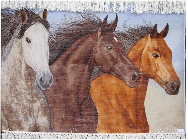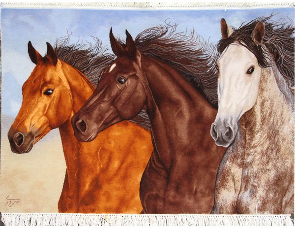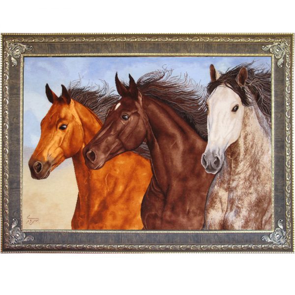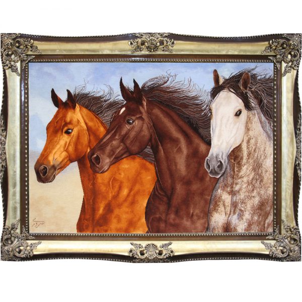 تابلو فرش دستباف سه اسب یکی ازمعروفترین و زیباترین تابلو فرش های گالری فرش ابری سردرود محسوب میشود، استفاده هنرمندانه از رنگها و بافت نفیس آن یک اثری با نمایی کاملاً طبیعی از این منظره طبیعت زیبایی خلق کرده است.