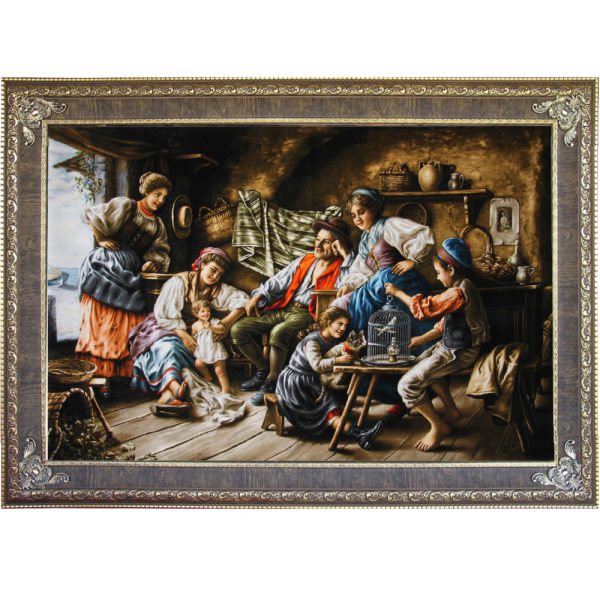 تابلوفرش دستباف کانون خانواده یکی از معروفترین و زیباترین تابلو فرشهای گالری فرش ابری سردرود محسوب میشود، استفاده هنرمندانه از رنگها و بافت نفیس آن یک اثری با نمایی کاملاً طبیعی از این منظره طبیعت زیبایی خلق کرده است.