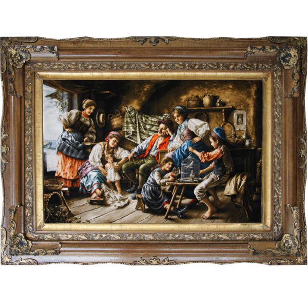 اگر بخواهیم نگاهی به داخل تابلو فرش دستباف کانون خانواده بیاندازیم ، یک محفل گرم و صمیمی خانوادگی را میبینیم که بعد از این که هر کدام از شغل و کارشان فارغ شدهاند به این کانون گرم پناه آورده اند تا مدت زمانی را با همصحبتی ، خستگی درکنند .