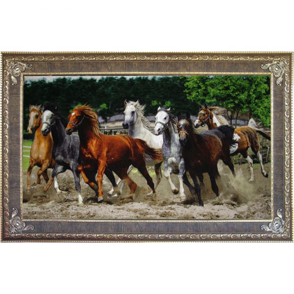 تابلو فرش دستباف گله اسب جنگل یکی ازمعروفترین و زیباترین تابلو فرش های گالری فرش ابری سردرود محسوب میشود، استفاده هنرمندانه از رنگها و بافت نفیس آن یک اثری با نمایی کاملاً طبیعی از این منظره طبیعت زیبایی خلق کرده است.