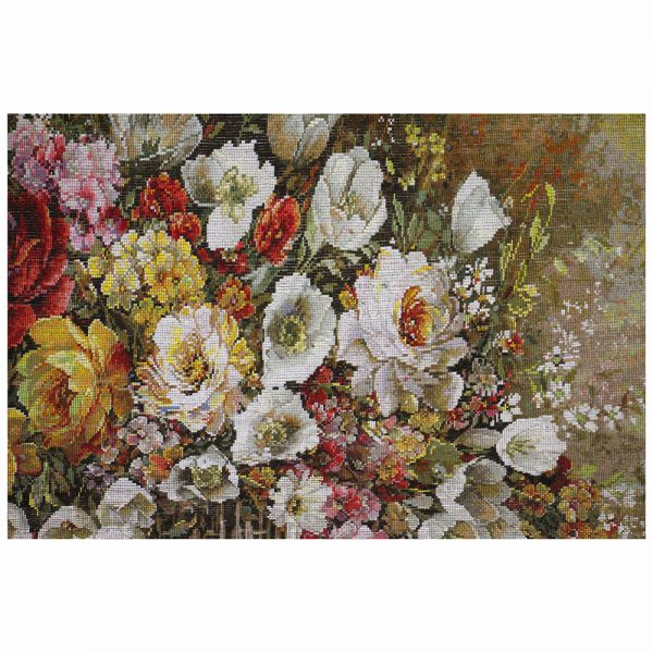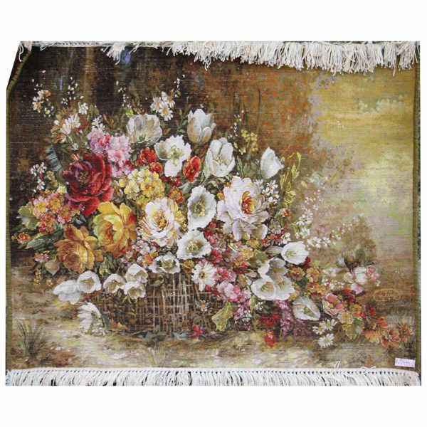 تابلو فرش دستباف سبد گل رز دارای 98 رنگ میباشد که 38 رنگ آن از ابریشم تهیه شده است.