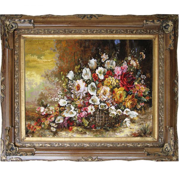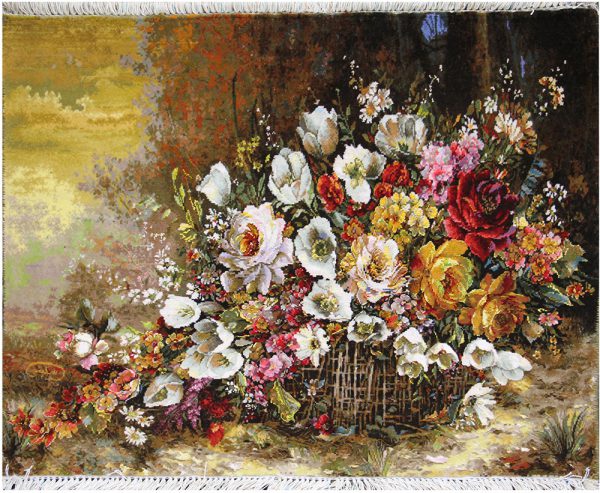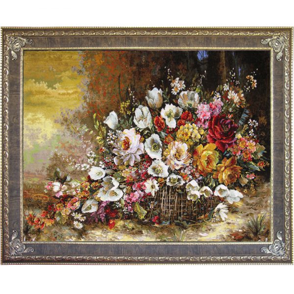 تابلو فرش دستباف سبد گل رز یکی از معروفترین و زیباترین تابلو فرش های گالری فرش ابری سردرود محسوب میشود، استفاده هنرمندانه از رنگها و بافت نفیس آن یک اثری با نمایی کاملاً طبیعی از این منظره طبیعت زیبایی خلق کرده است.