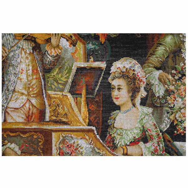 تابلو فرش دستباف مدل پیانوزن دارای 138 رنگ میباشد که 28 رنگ آن از ابریشم تهیه شده است.