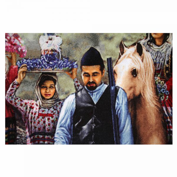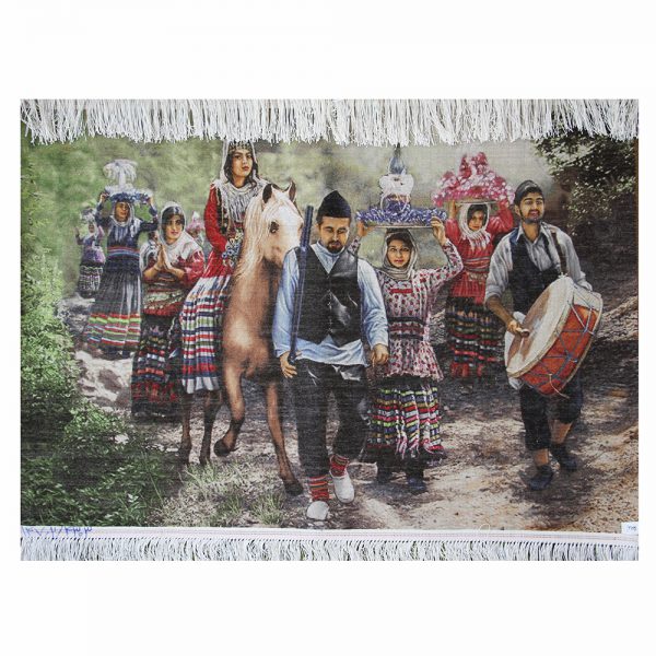 تابلو فرش دستباف مدل مدل جهاز بران گیلکی دارای 128 رنگ میباشد که 28 رنگ آن از ابریشم تهیه شده است.