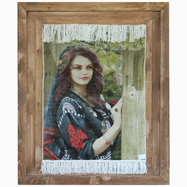 این تابلو فرش که یک دختر کرد با لباس اصیل و سنتی کردی را به تصویر کشیده است یکی از زیبا ترین و منحصر بفرد ترین تابلو فرش های دستباف چهره در تبریز میباشد این تابلو فرش که از یک اثر عکاس شده الهام گرفته است نمایان گر شکوه و زیبایی دختران کرد ایرانی میباشد .