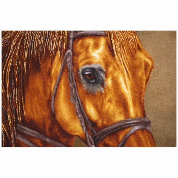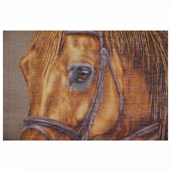 تابلو فرش دستباف اسب قهوهای دارای 48 رنگ میباشد که 4 رنگ آن از ابریشم تهیه شده است.