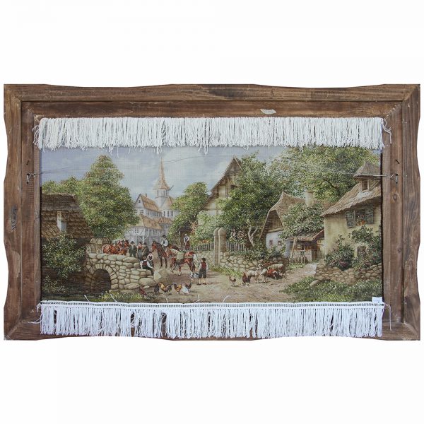 تابلو فرش دستباف منظره دهکده (Village) یکی از معروفترین و زیباترین تابلو فرش های گالری فرش ابری سردرود محسوب میشود، استفاده هنرمندانه از رنگها و بافت نفیس آن یک اثری با نمایی کاملاً طبیعی از این منظره طبیعت زیبایی خلق کرده است.