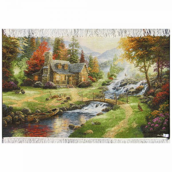 تابلو فرش دستباف کلبه کوهستان یکی از زیباترین و منحصر به فردترین این نوع تابلوفرش هاست. با تماشای این اثر گویی پنجرهای به وسط بهشت در خانههایمان گشوده میشود و نسیم خنک برخاسته از آبشاران و رودخانه صورتمان را نوازش میکند میتوان از هوای تازه این تابلو فرش تنفس نمود و برای چندی دود و دم شهری را کنار گذاشت میتوان از صدای پرندگان و رقص درختان لذت برد و هنگام غروب آفتاب مهمان کلبه وسط بهشت شد و شب را غرق در آرامش مطلق این طبیعت بکر شد .