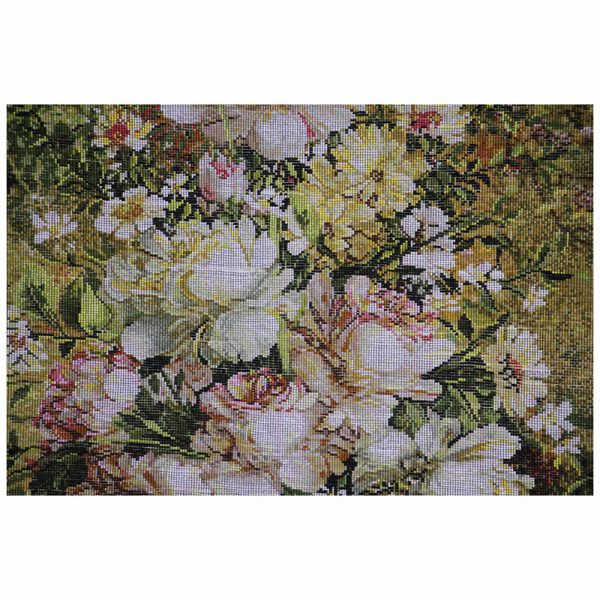 تابلوفرش دستباف گل مزرعه دارای 86 رنگ میباشد که 8 رنگ آن از ابریشم تهیه شده است.