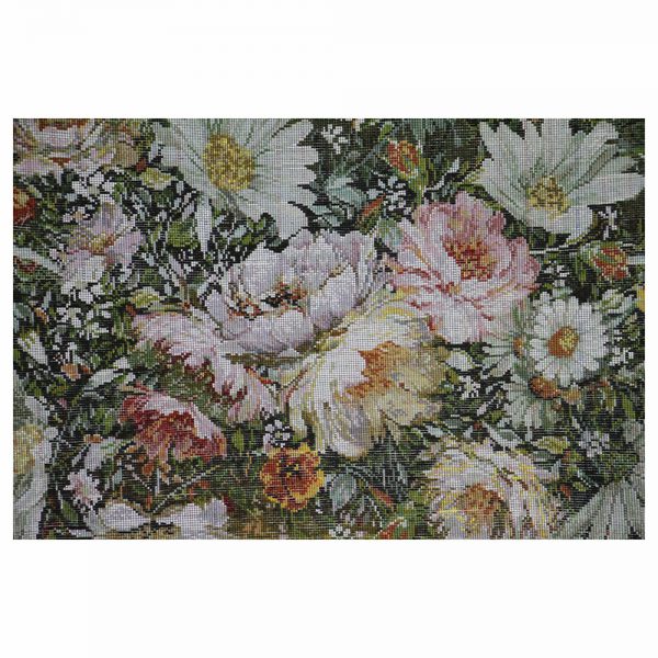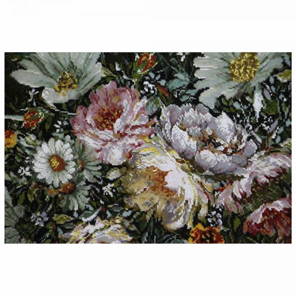 تابلوفرش دستباف بابونههای سبد حصیر دارای 88 رنگ میباشد که 8 رنگ آن از ابریشم تهیه شده است.