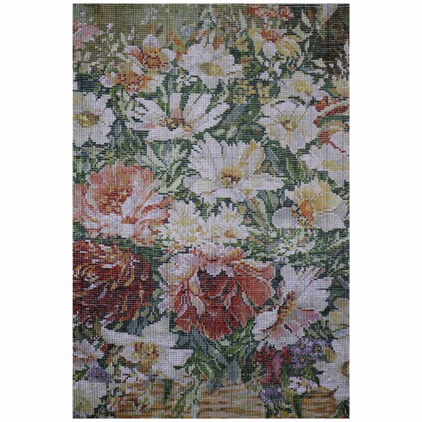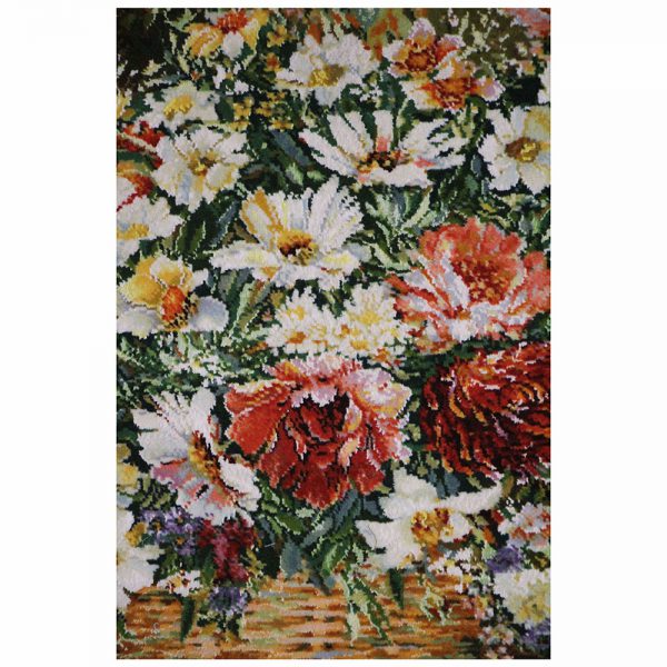 تابلوفرش دستباف گل سبد حصیری یکی از معروفترین و زیباترین تابلو فرش های گالری فرش ابری سردرود محسوب میشود، استفاده هنرمندانه از رنگها و بافت نفیس آن یک اثری با نمایی کاملاً طبیعی از این منظره طبیعت زیبایی خلق کرده است.