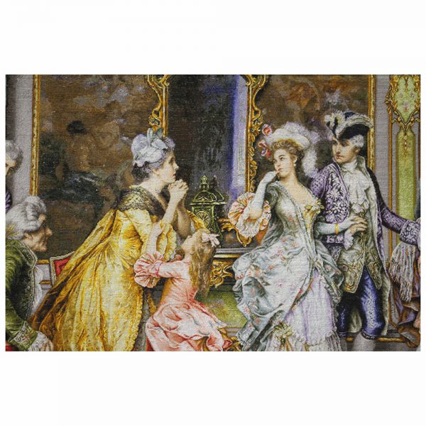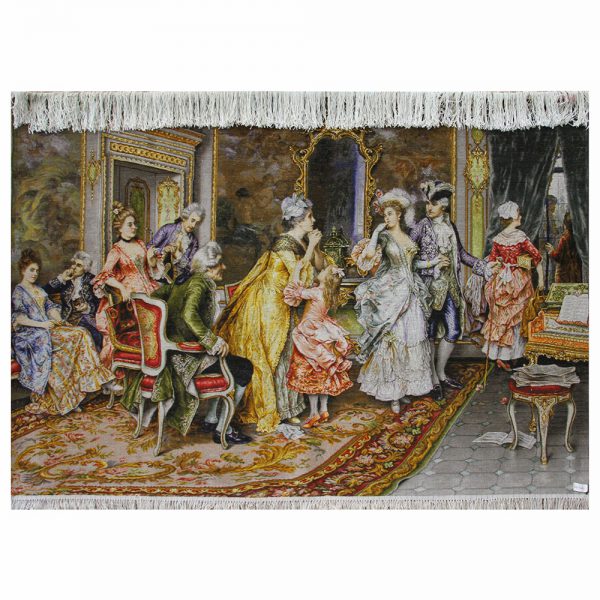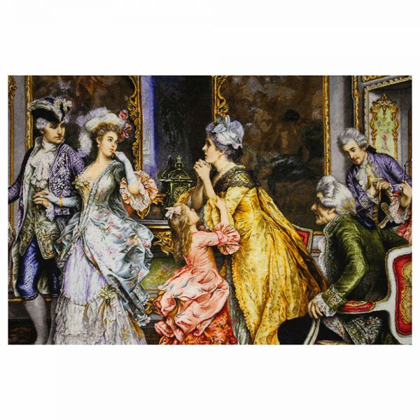 تابلوفرش دستباف خداحافظی کاترین دارای 168 رنگ میباشد که 28 رنگ آن از ابریشم تهیه شده است.